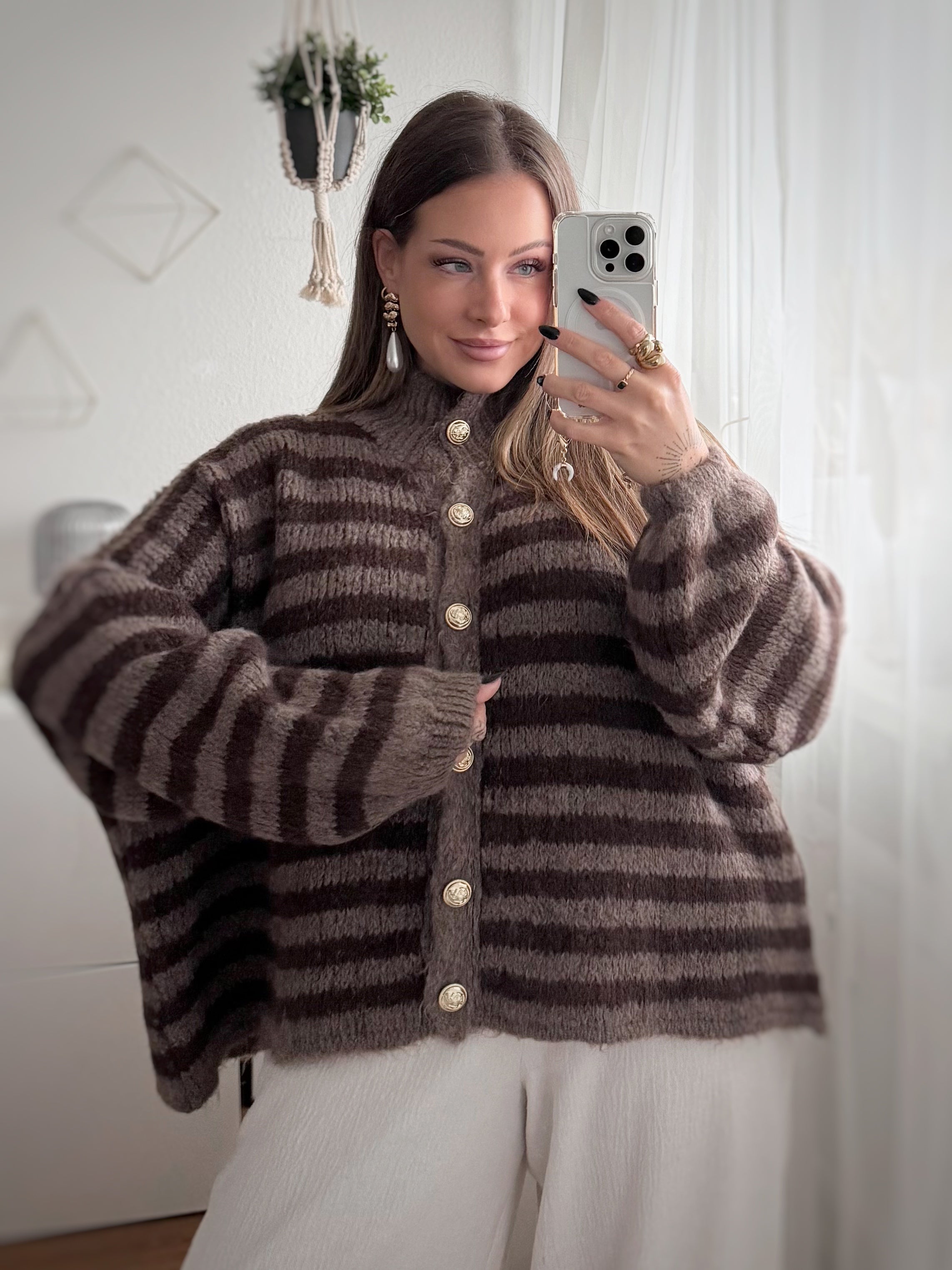 Wunderschöne Strickjacke! Habe sie online gesehen und mich sofort verliebt. Wird mein absolutes Lieblingsteil für den Herbst und Winter 😍😍 sehr weich und angenehm auf der Haut.